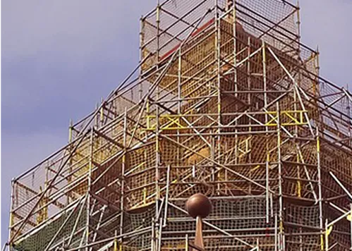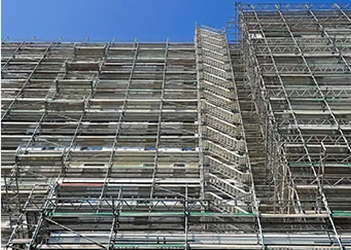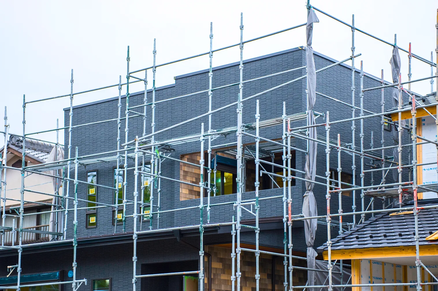職人さんが建物の外壁や屋根などの高所での作業を安全かつ効率的に行うための足場を仮設させていただきます。